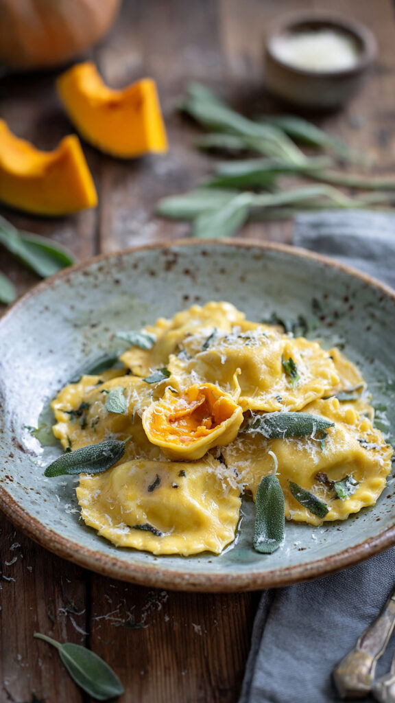 I Tortelli di Zucca Burro e Salvia sono un grande classico della tradizione mantovana, un primo piatto elegante e avvolgente in cui la dolcezza della zucca incontra la sapidità del formaggio e il profumo del burro fuso alla salvia.