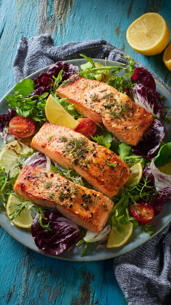 La ricetta è perfetta per una cena veloce, sana e ricca di proteine: aggiungi un contorno fresco come quello in foto – insalata mista e limone – e avrai un piatto completo, profumato e colorato.