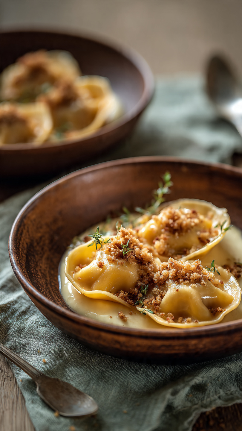 🍂🧀 Cappellacci Ripieni di Zucca e Amaretti su Fonduta di Provola – Il Primo Piatto Elegante e Cremoso che Profuma d’Autunno