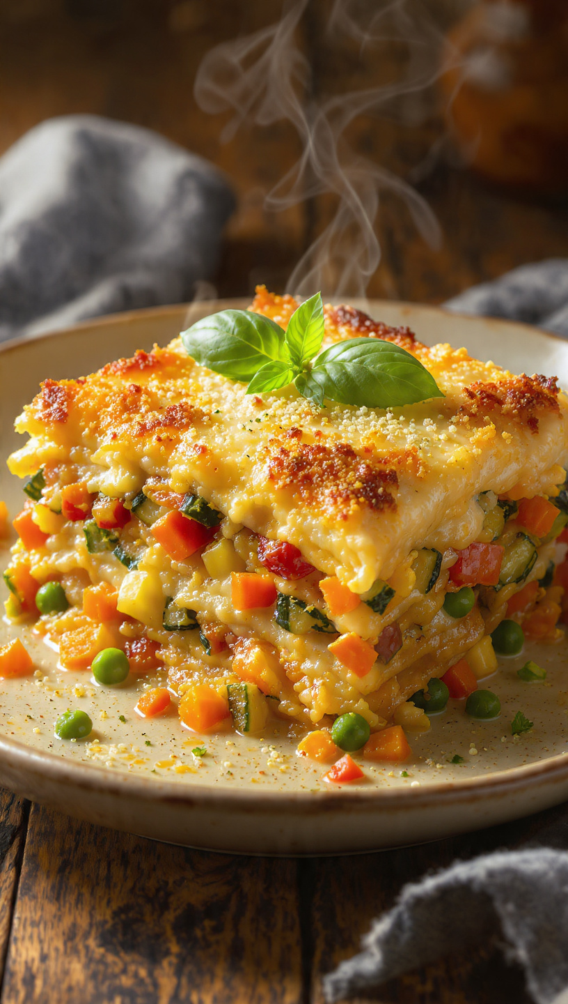 Le Lasagne con Coriandoli di Verdure sono un piatto elegante, vivace e ricco di gusto, perfetto per portare in tavola colore e leggerezza.Un’alternativa vegetariana alle classiche lasagne, preparata con zucchine, carote, peperoni, piselli e una besciamella morbida che avvolge ogni strato.Il risultato è un primo piatto cremoso, profumato e invitante, ideale per pranzi domenicali, cene…