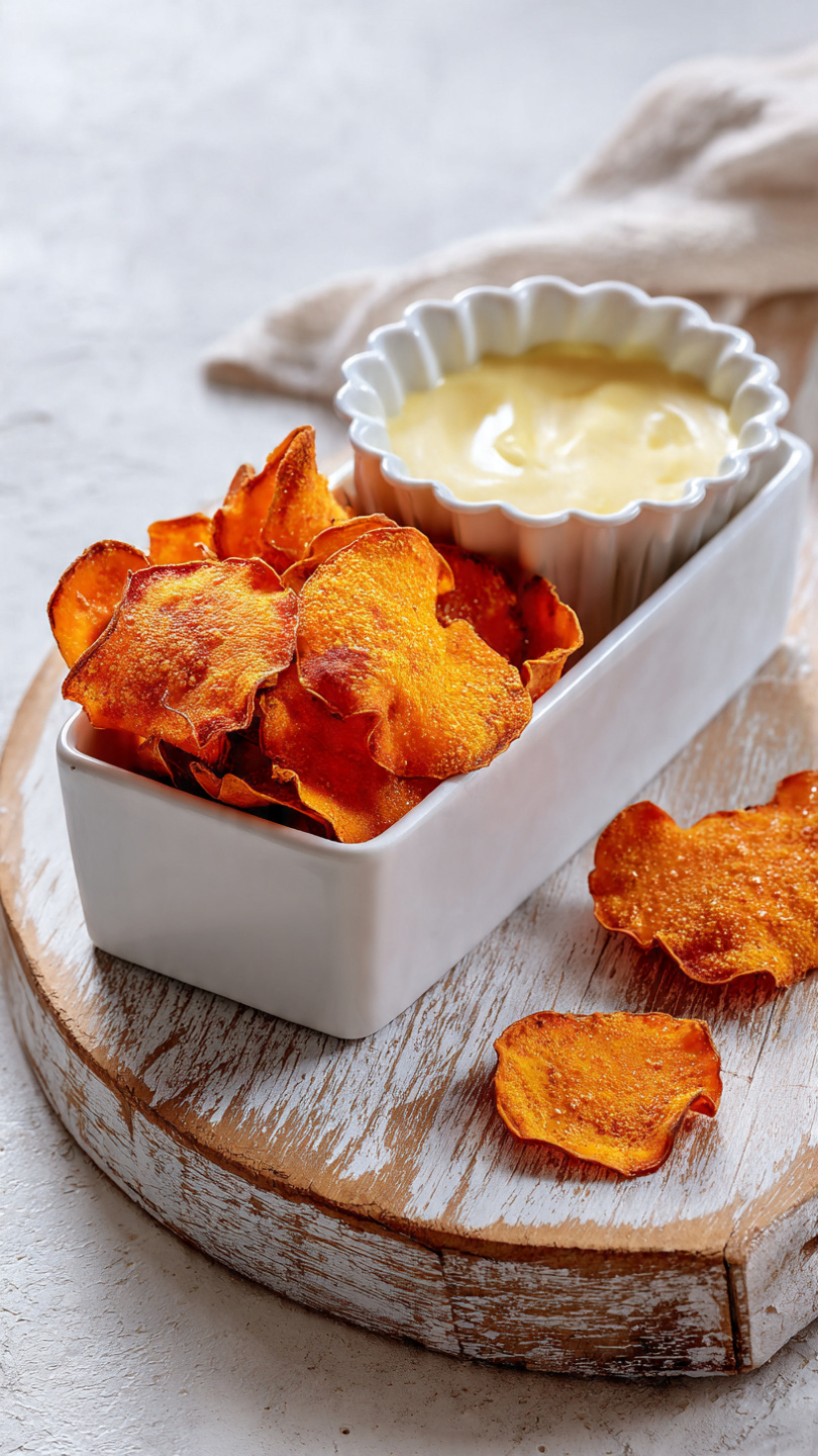 🍠🧀 Chips di Patate Dolci con Fonduta al Grana Padano – L’Antipasto Croccante e Cremoso che Conquista Tutti