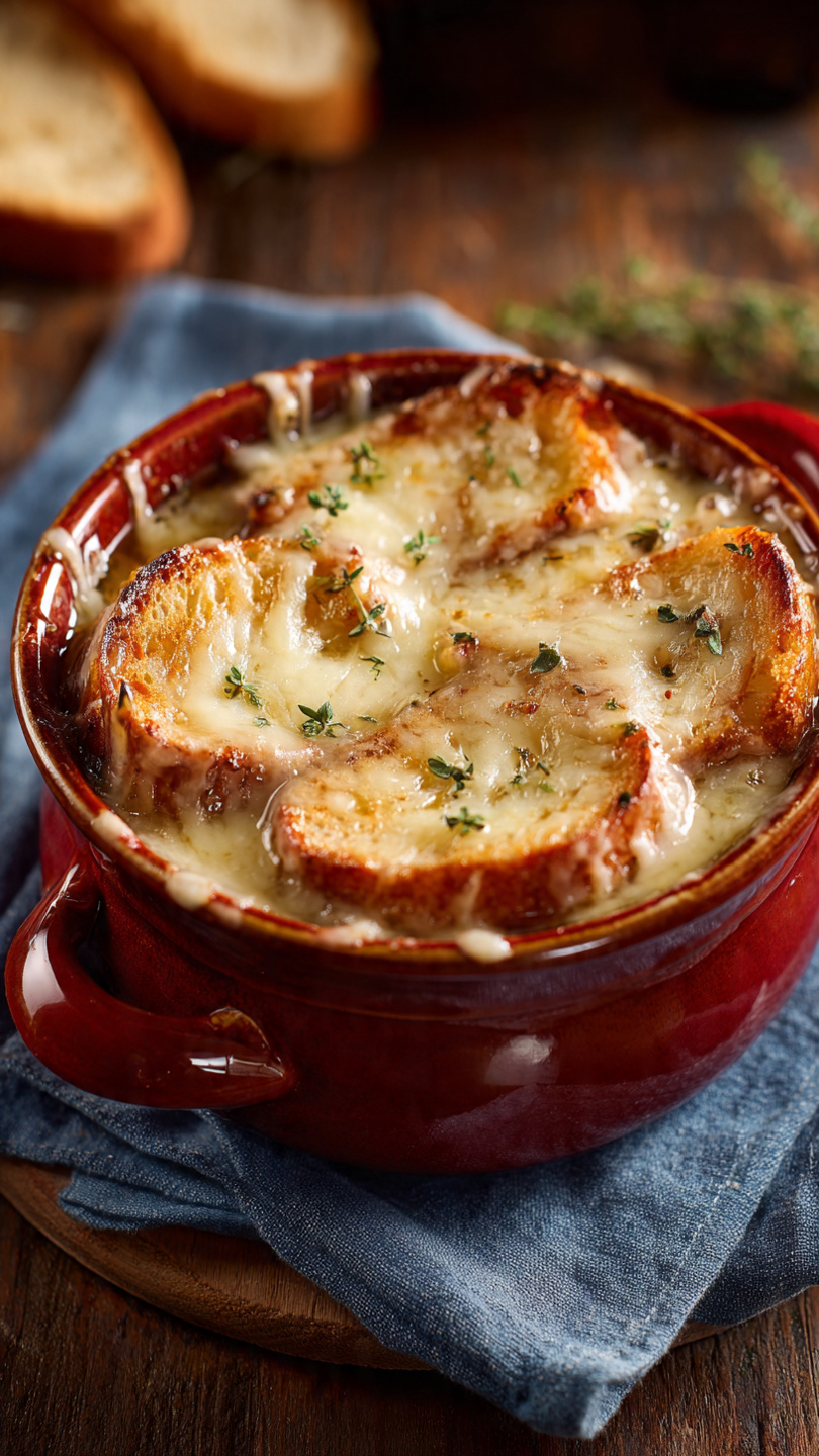 🧅 Zuppa di Cipolle ai 4 Formaggi Francesi – Cremosa, Profumata e Incredibilmente Raffinata