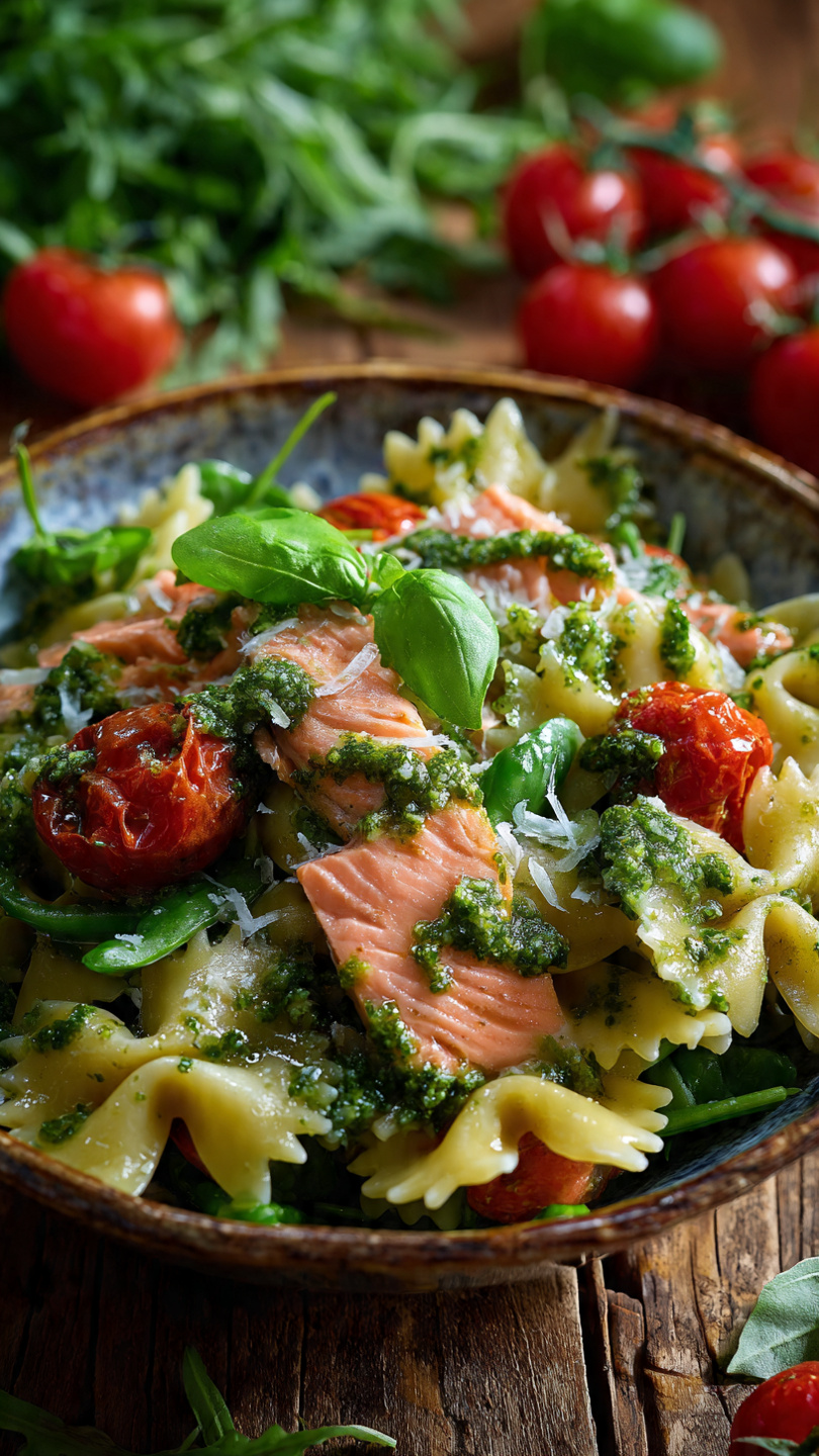 🍝🐟 Farfalle al Salmone, Taccole e Pomodorini Confit con Pesto di Rucola: il Primo Fresco, Profumato e Super Colorato