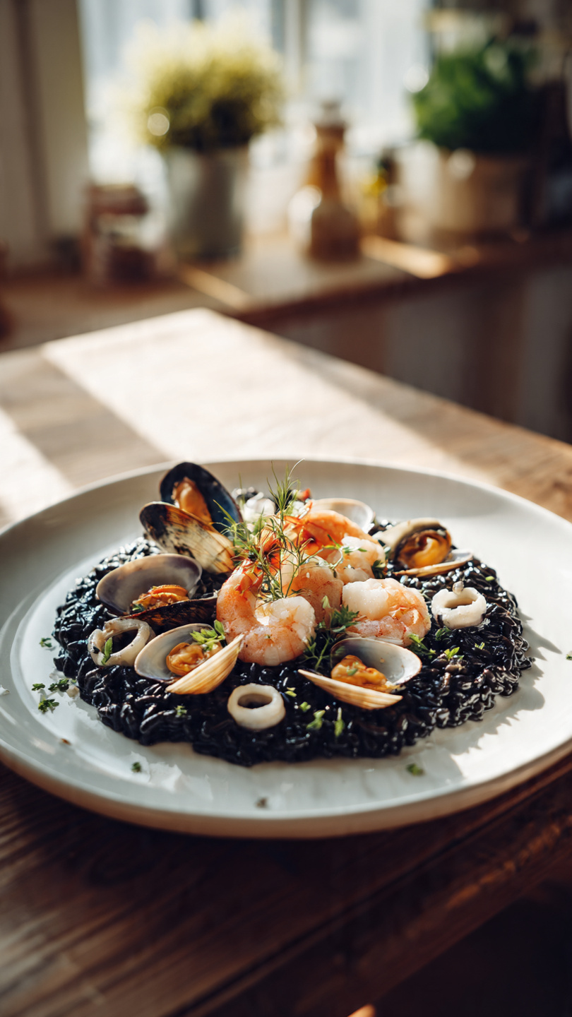 🦑🍤 Risotto al Nero di Seppia e Frutti di Mare – Elegante, Intenso e Profumatissimo