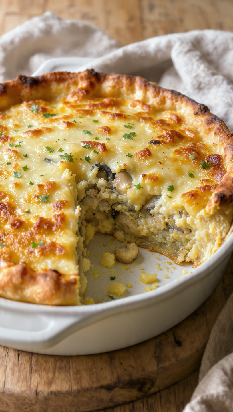 La torta di patate con pollo e funghi è un comfort food perfetto: ricca, cremosa, dorata in superficie e con un ripieno morbido che profuma di casa. È una ricetta ideale per le giornate più fresche, quando si desidera un piatto unico completo e saporito, capace di mettere tutti d’accordo.Strati di patate morbide incontrano bocconcini…