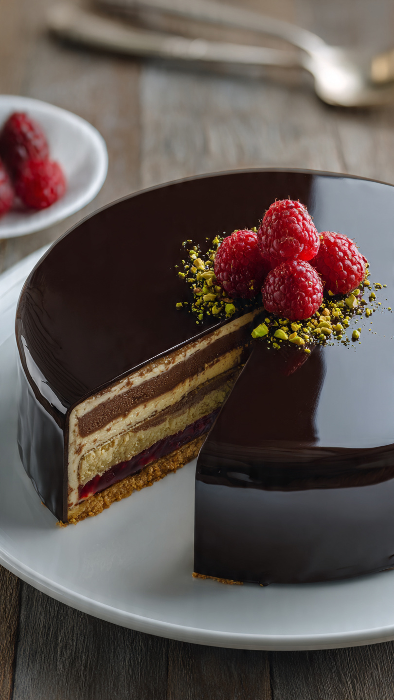 🍫 Torta Moderna al Cioccolato e Lamponi – Eleganza, Cremosità e Brillantezza da Pasticceria